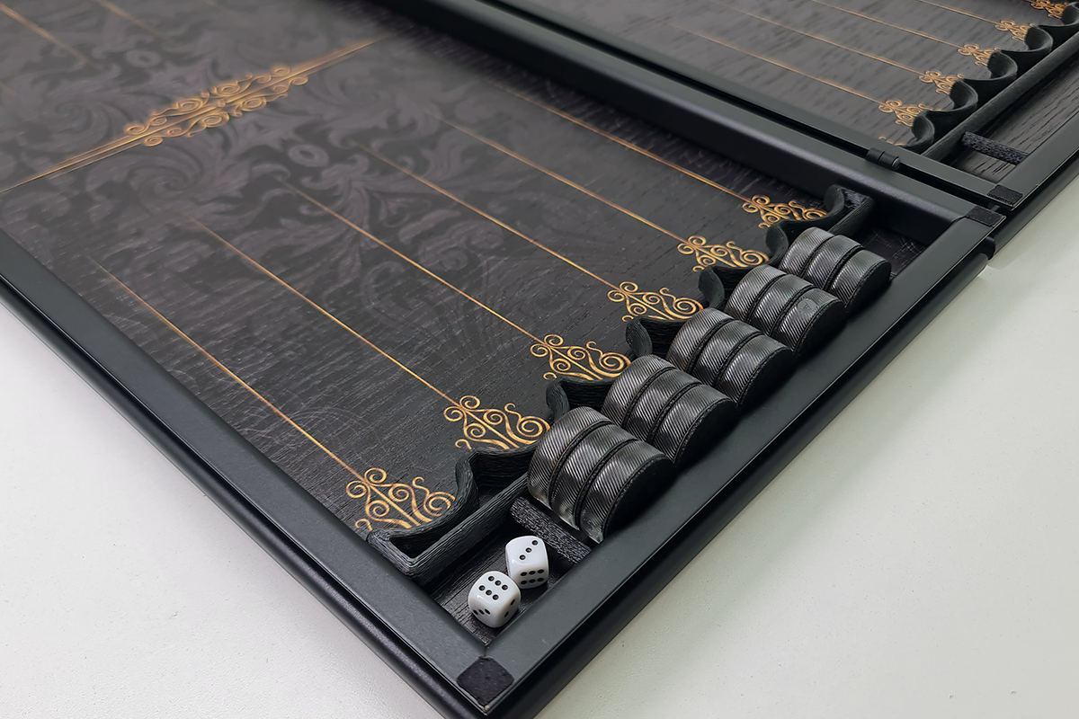 Handcrafted Backgammon made from natural oak veneer with a solid aluminum frame. Premium quality, customizable design, and durable playing pieces — created in Europe with attention to detail.